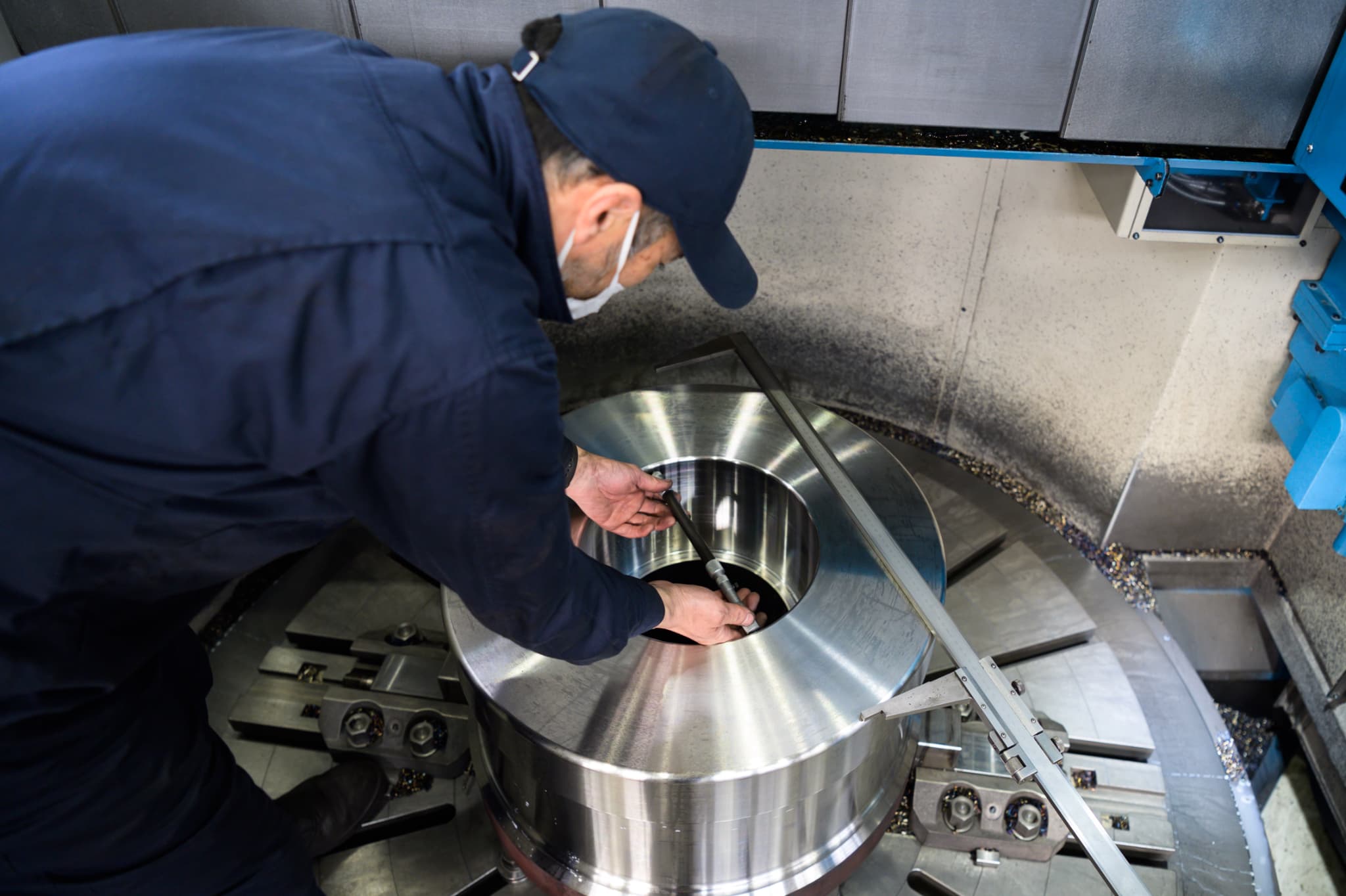 発電用部品、産業機械部品、建設機械部品の中・大型部品を切削加工いたします。Φ400mm〜Φ2000mmまで対応。様々な形状・サイズに対応しております。大物サイズのターニング加工がに必要なときは、ぜひ一度ご相談ください。